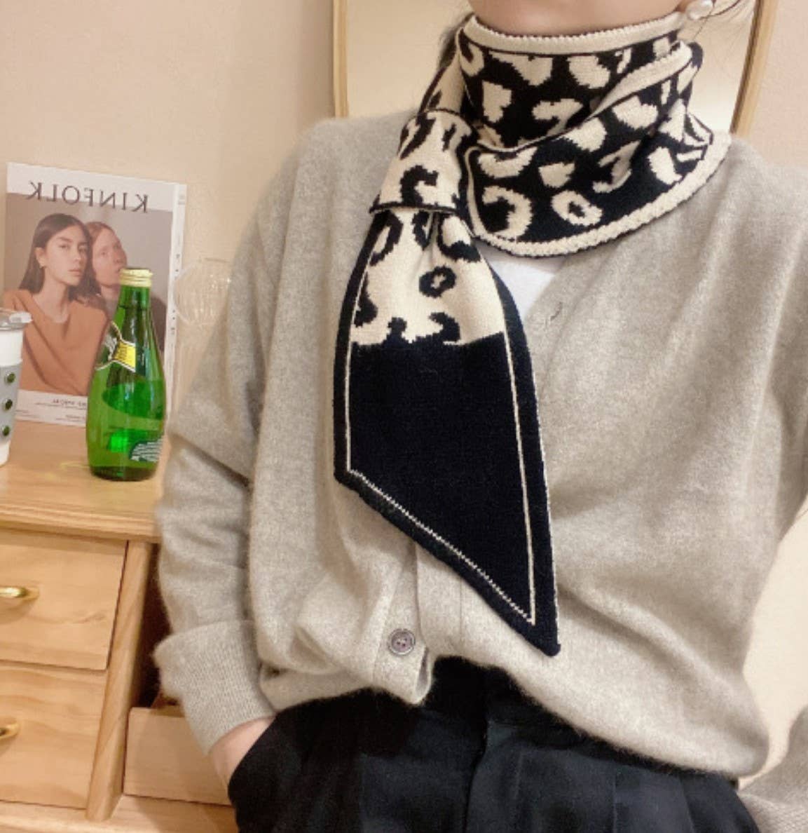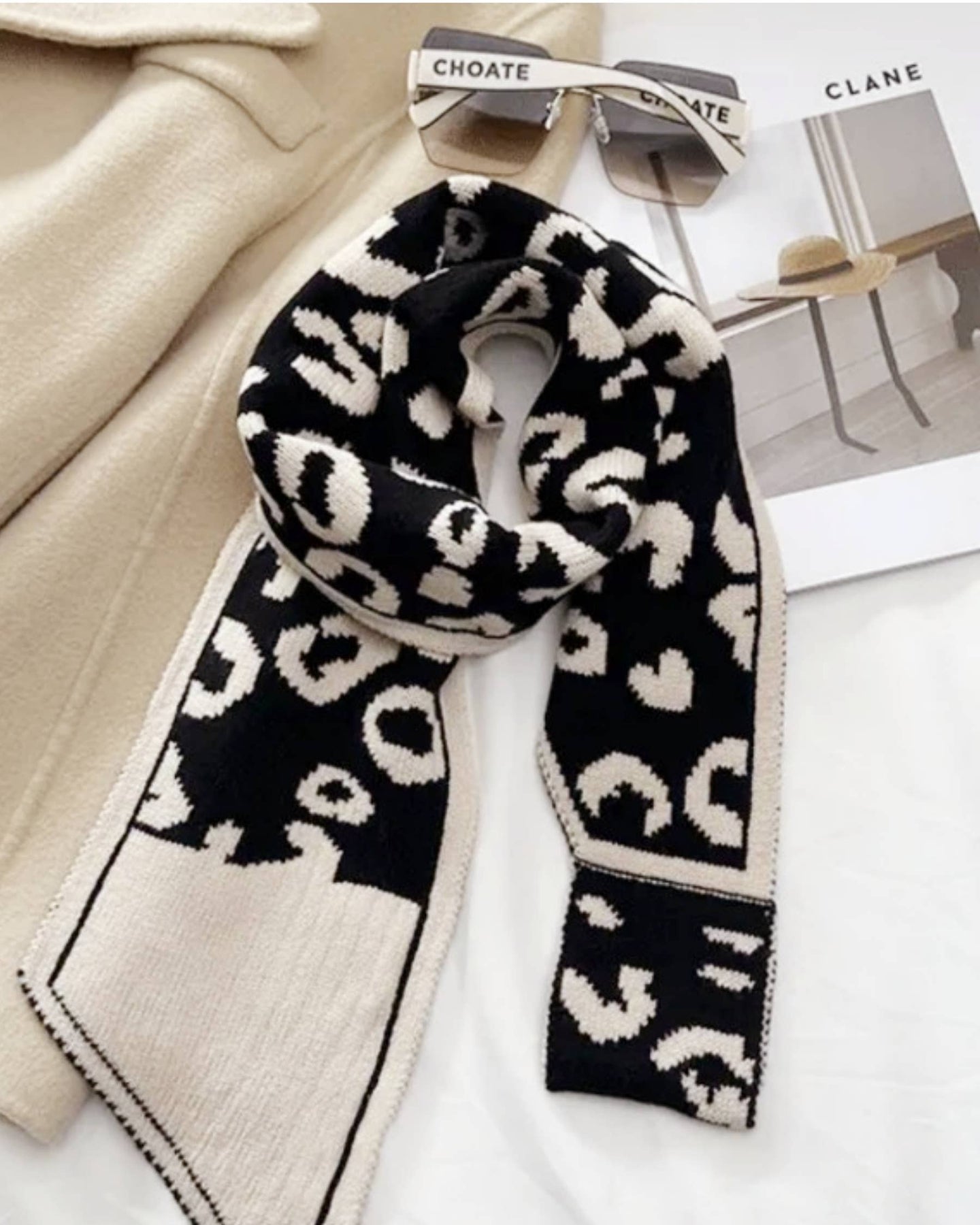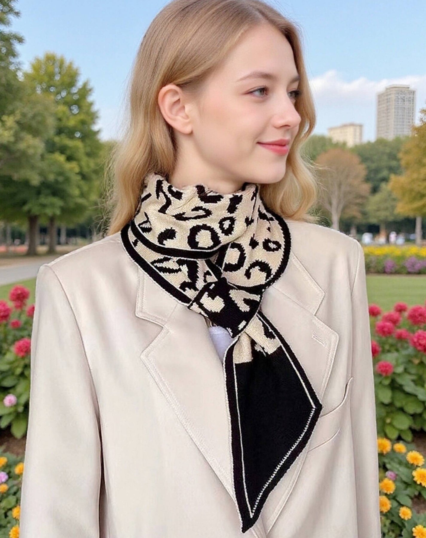 Sophie Scarf-Beige-Black Cross-Front Leopard Sophie Scarf