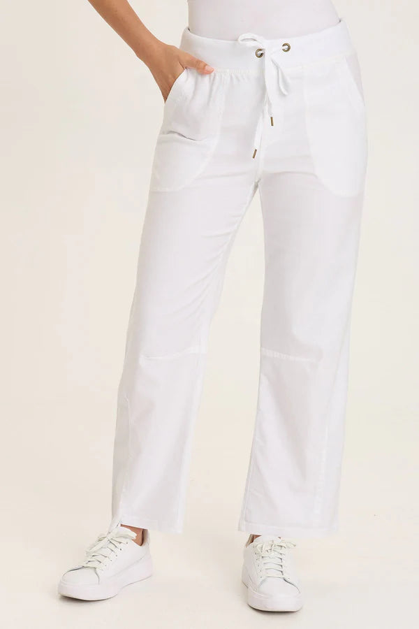 Darts adorn the leg of this barrel-like pant. Paired with a drawstring waist and all your favorite pockets.