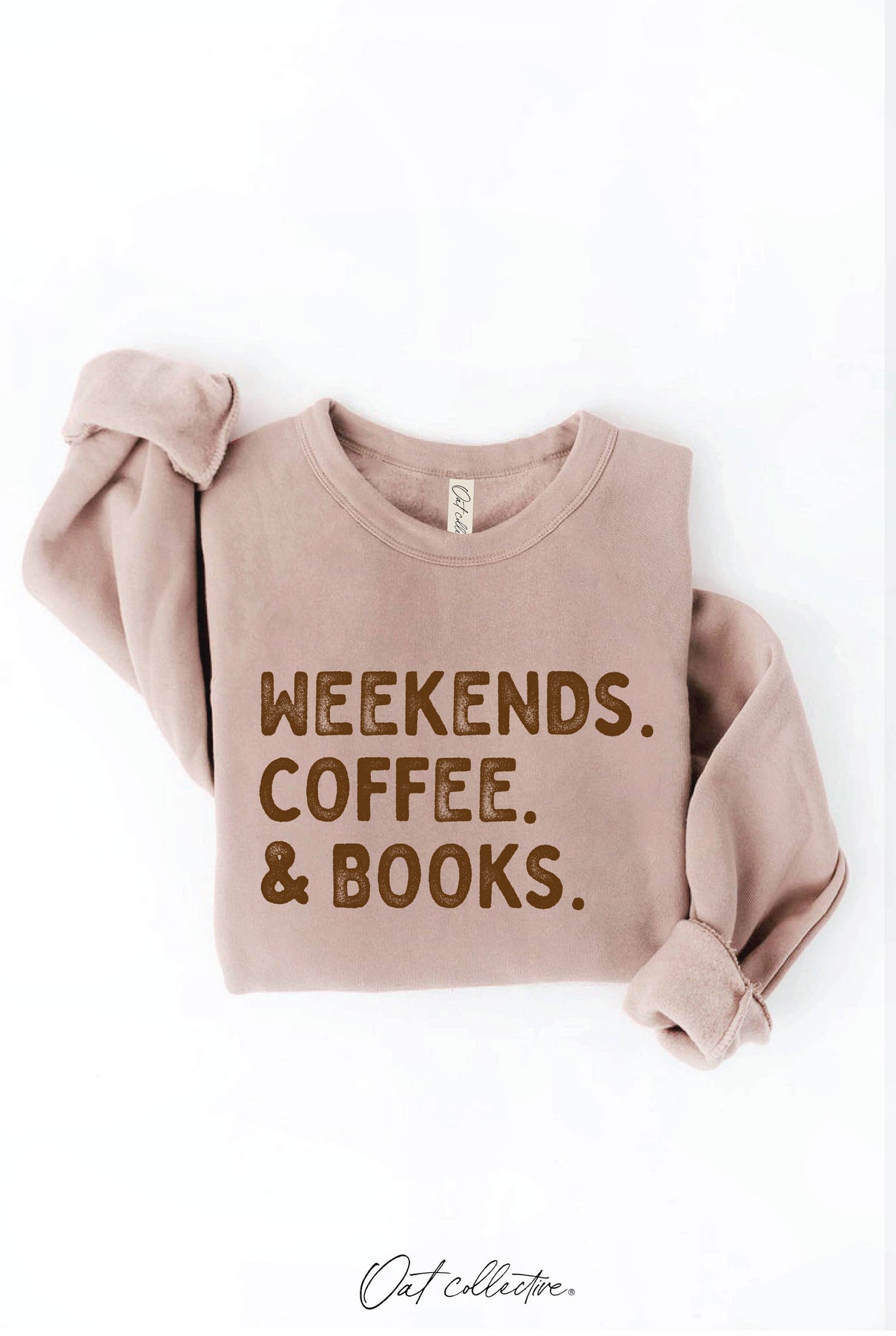 WEEKENDS COFFEE AND BOOKS Graphic Sweatshirt Unisex Fleece Pullover Relaxed Fit.