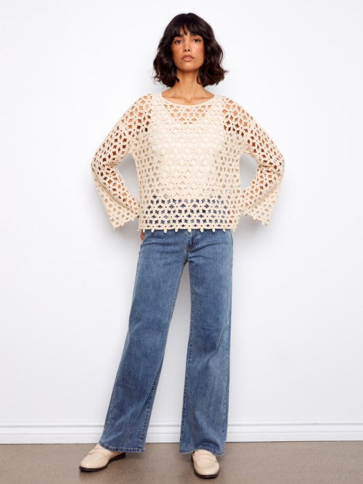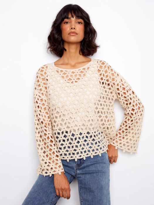 Charlie B 3/4 Sleeve Crochet Flower Top - Natural
