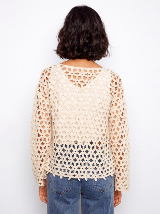 3/4 Sleeve Crochet Flower Top