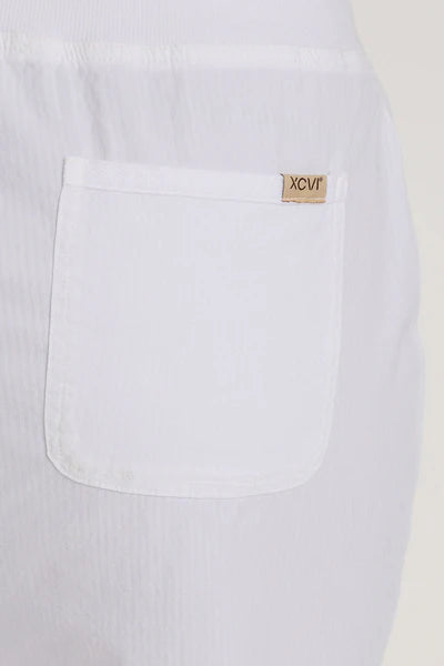 Clean flared leg with front and back pockets, brass zipper details and a drawstring waist have Darrow above the pack!