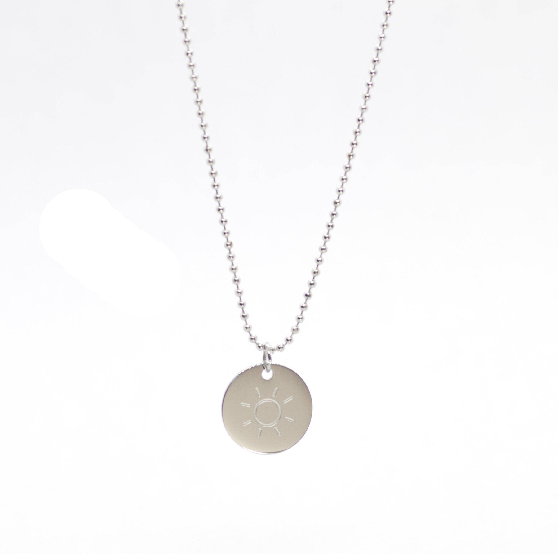 Our new line of pendants! Our classic delicate chain with a cute little token charm that you can mix and match. Product Details * Material: 18k gold plated Sterling Silver chain * Pendant: Etched palm tree design on 5/8" disk * Chain: 16" + 2" extender