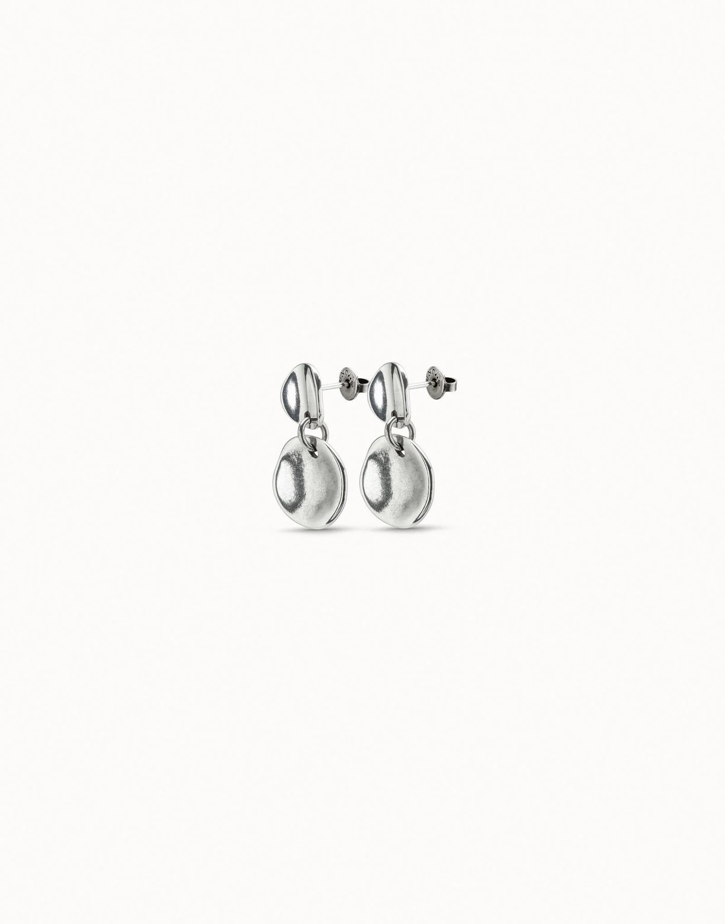 Sophisticated earrings featuring two uneven round shapes held together by a small hoop. Handmade in Spain through a 100% artisan process in UNOde50’s unique, distinctive style.