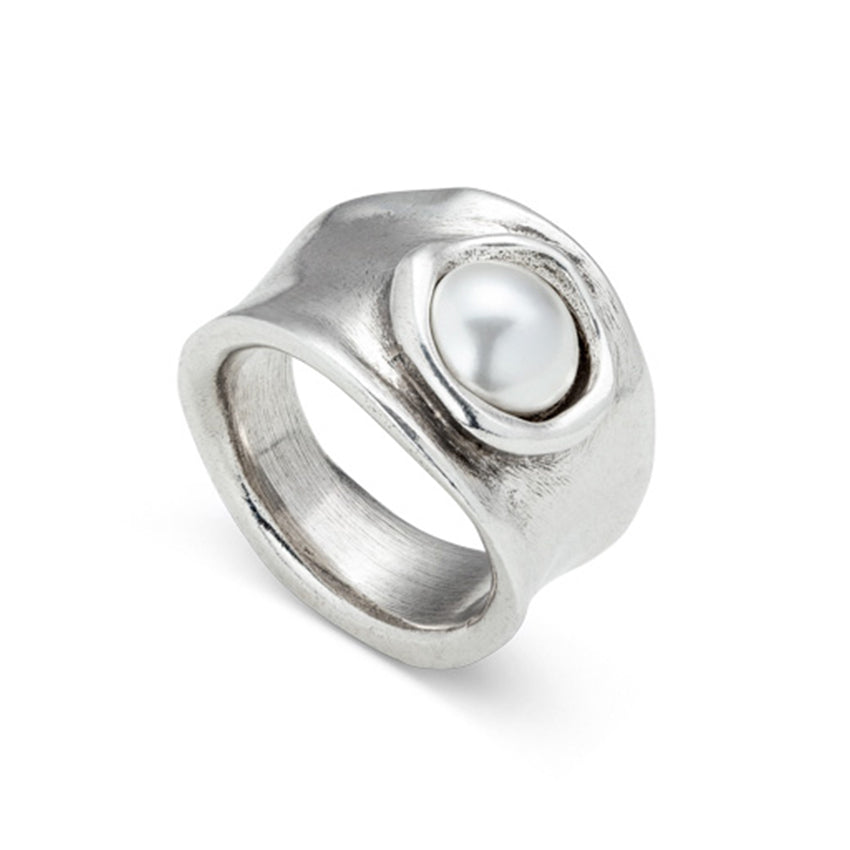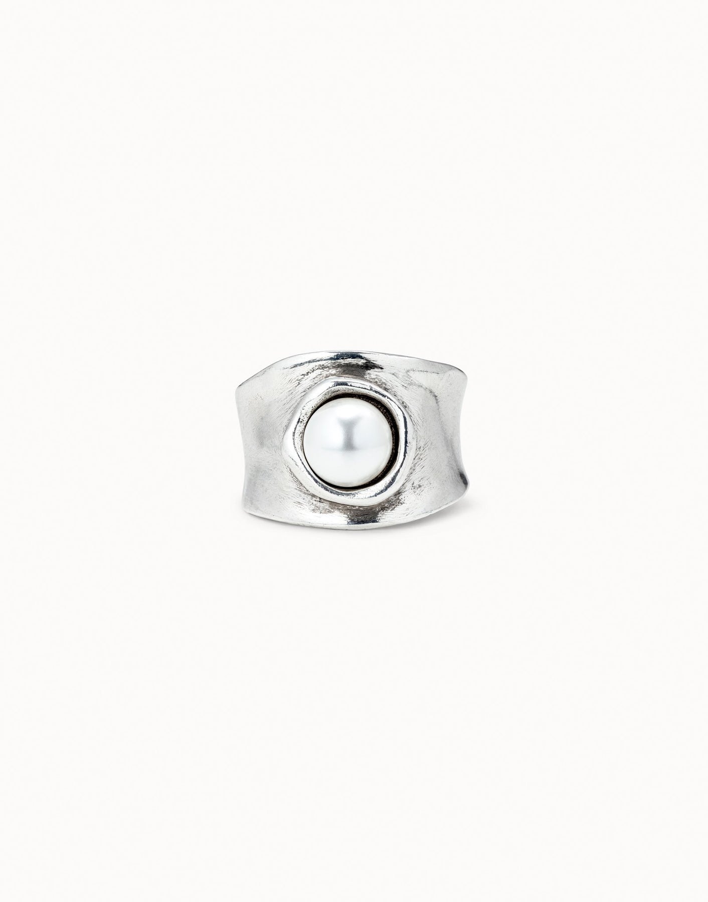 Sterling silver-plated ring with pearly SWAROVSKI® ELEMENTS crystal in the center. 100% handmade in Spain by UNOde50.