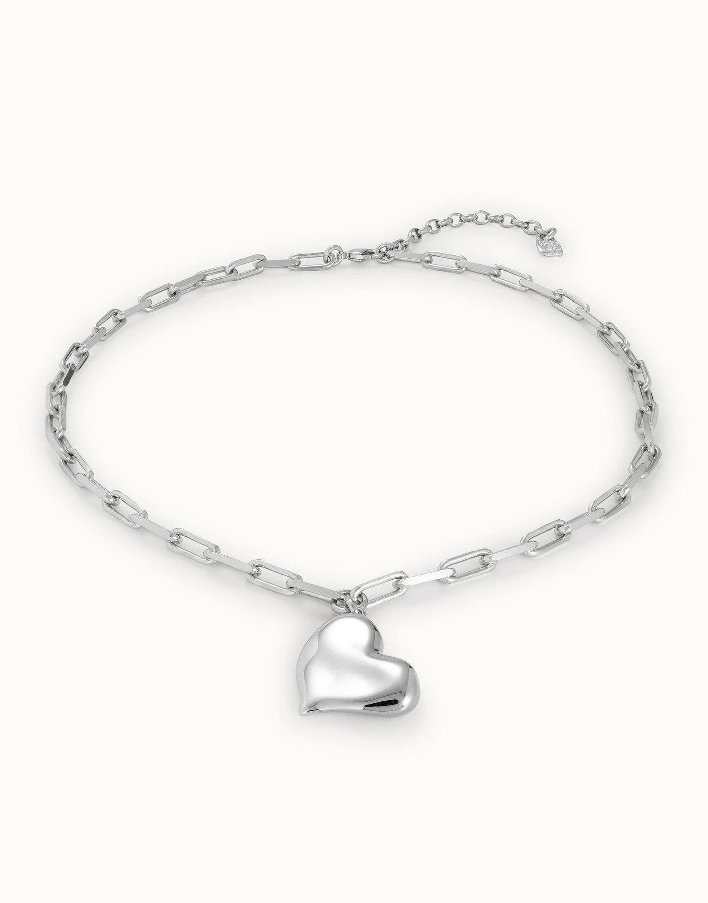 Short sterling silver-plated necklace with mid-sized links and iconic heart of the brand. Its carabiner clasp allows to fit the piece to the desired size. Jewel made in Spain under a 100% handcrafted process.
