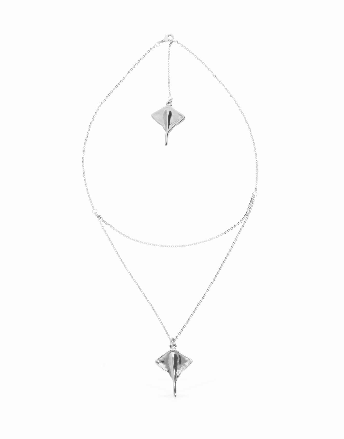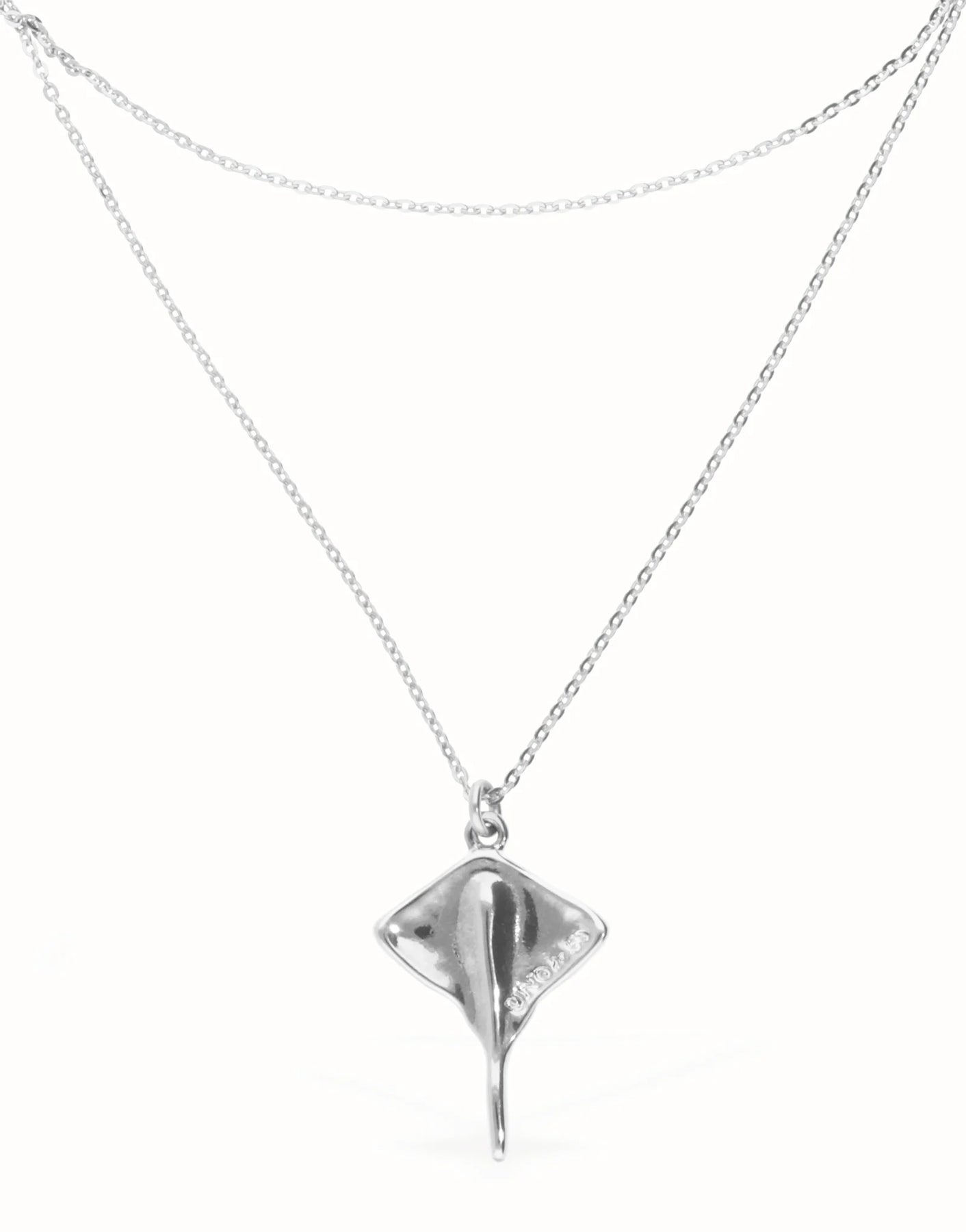 Double short chain pendant with stingray.Get the pieces of the collection Ser Majestuosa, a tribute to Puerto Rico island and its people due the elegance of the manta ray flapping through the sea.