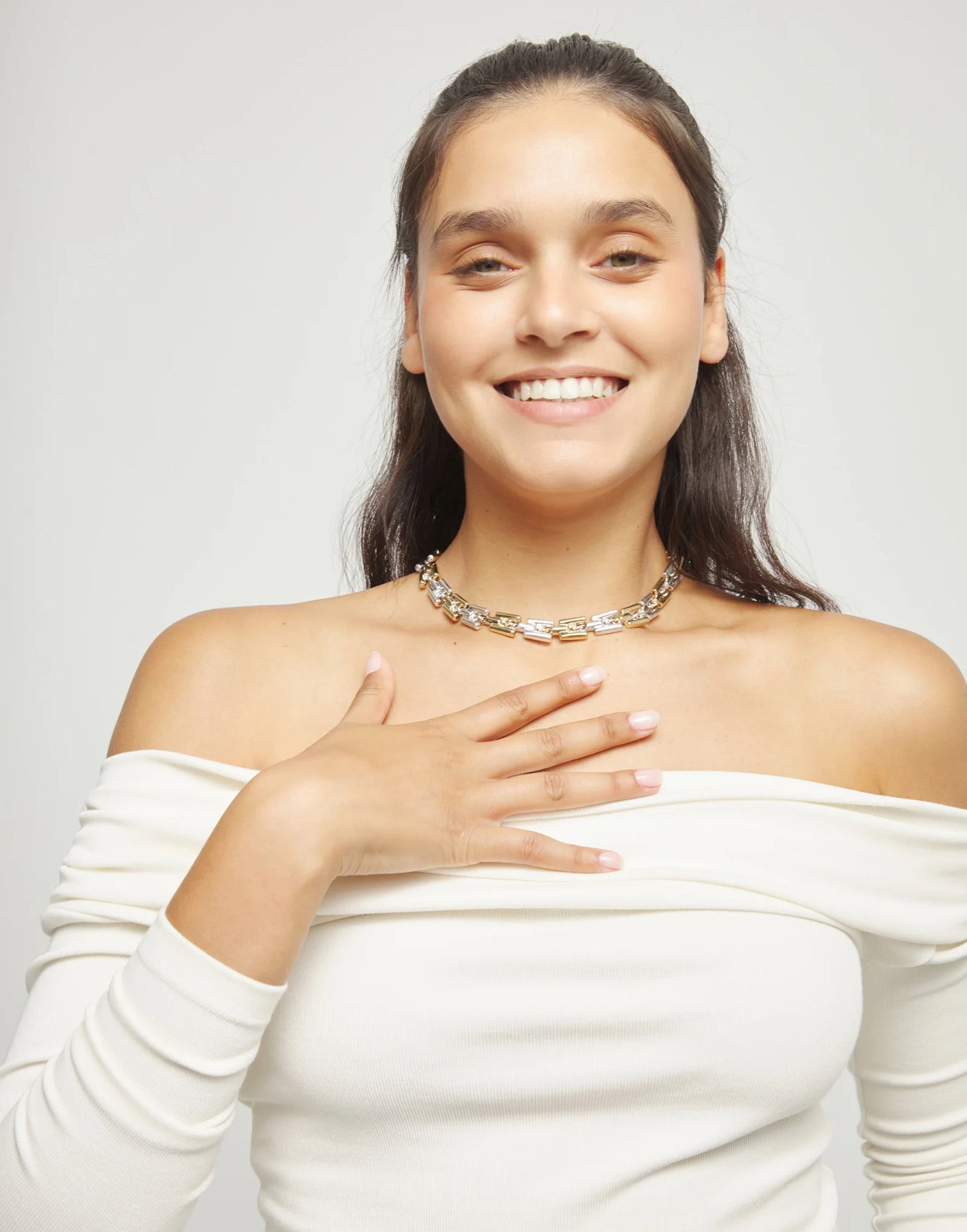 Necklace with mixed links that create a unique, sophisticated contrast.