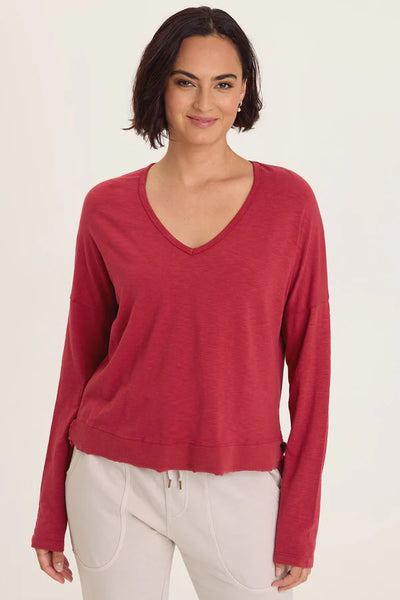 XCVI Wearables Odilia High-Low Long Sleeve V-Neck Top in Corundum