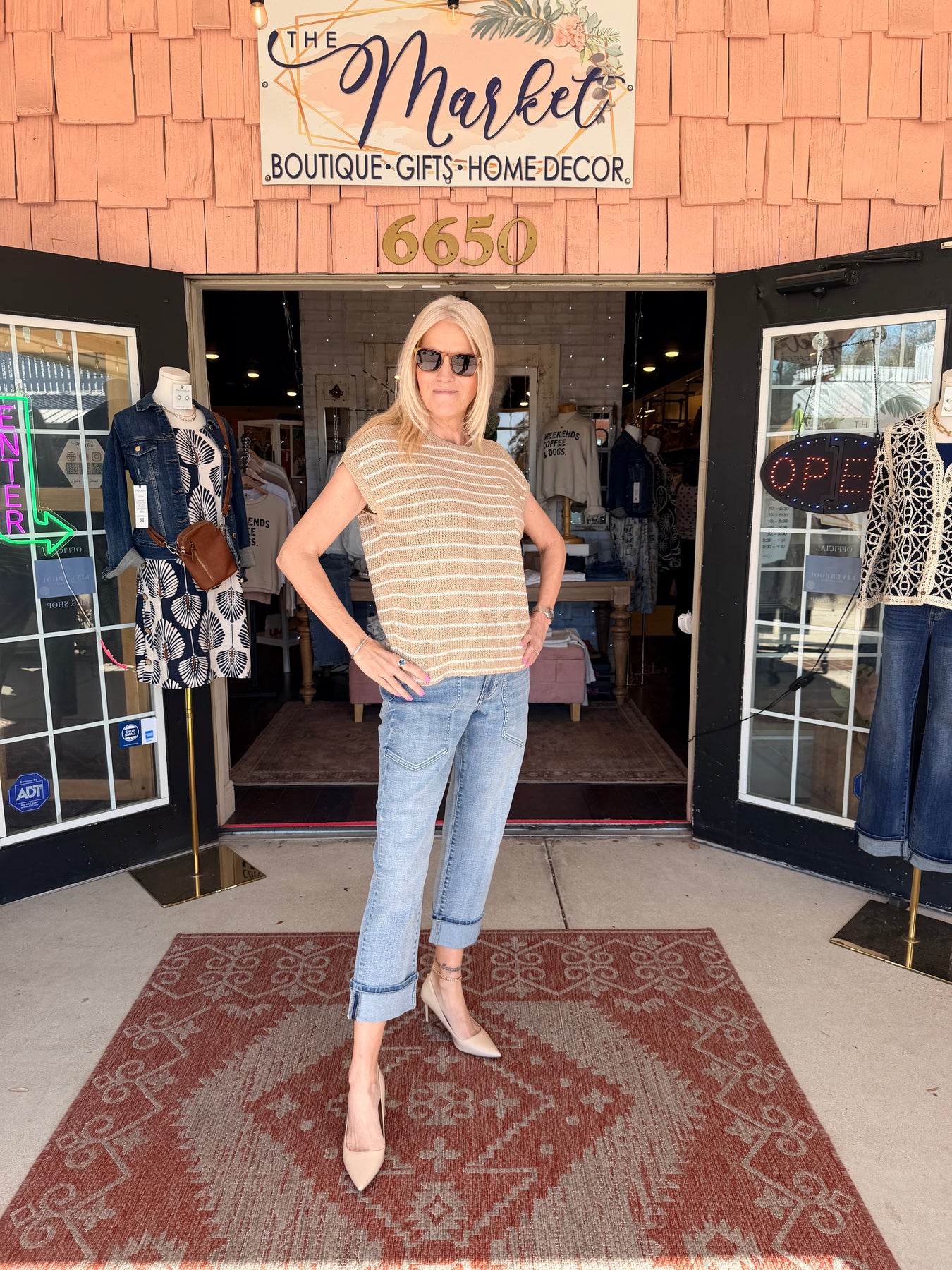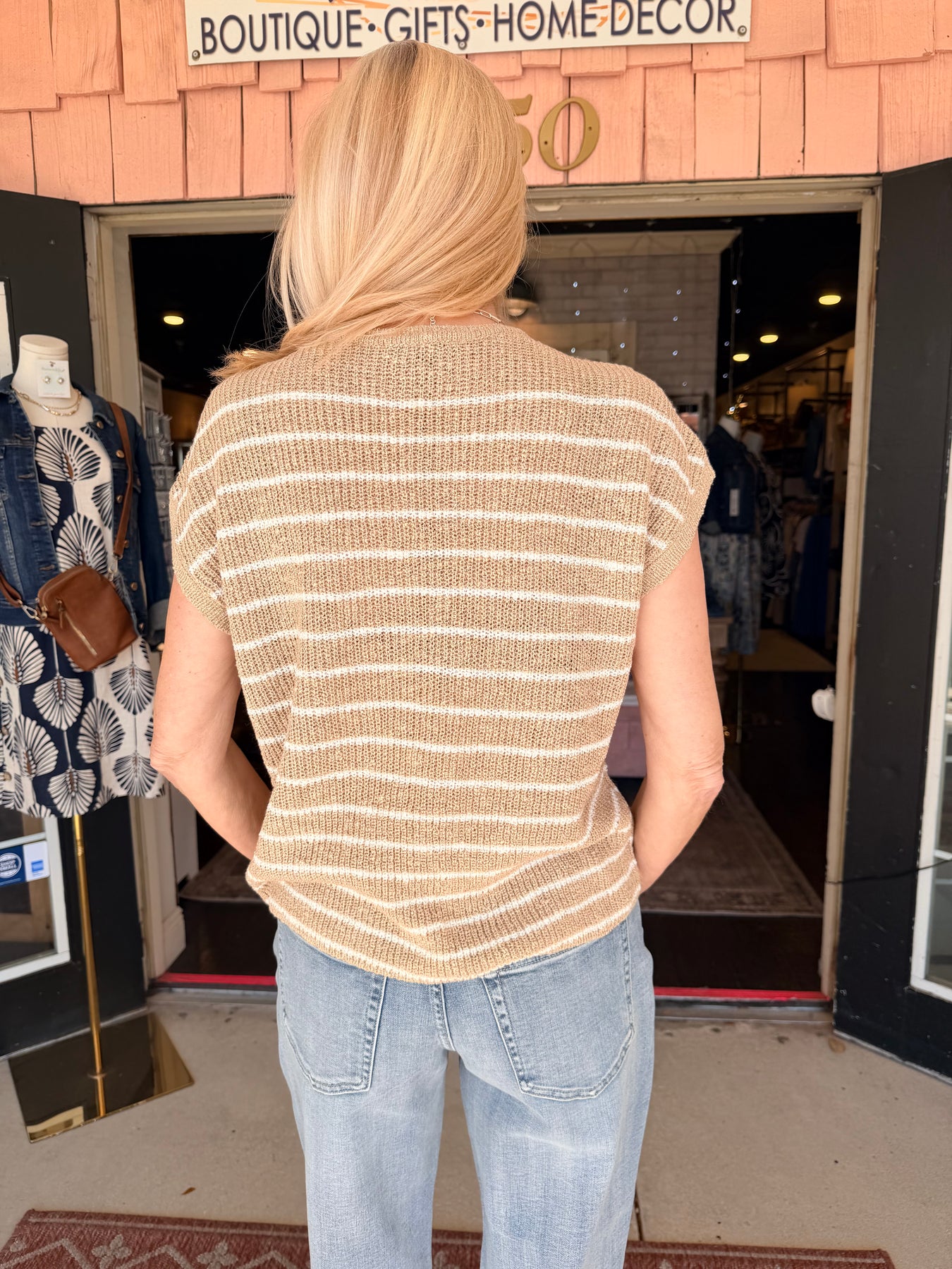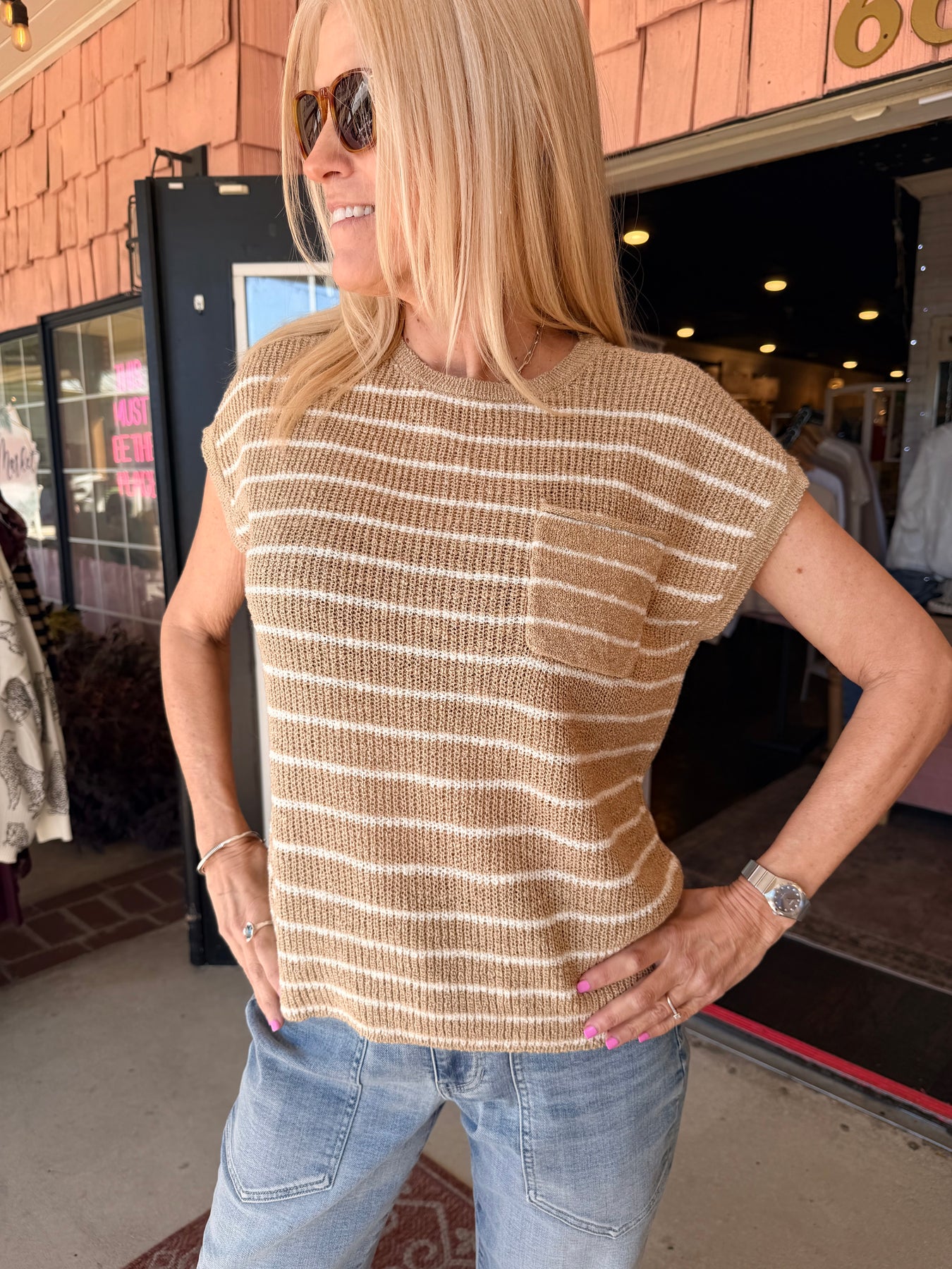 Charlie B Striped Cap Sleeve Knit Top - Sand