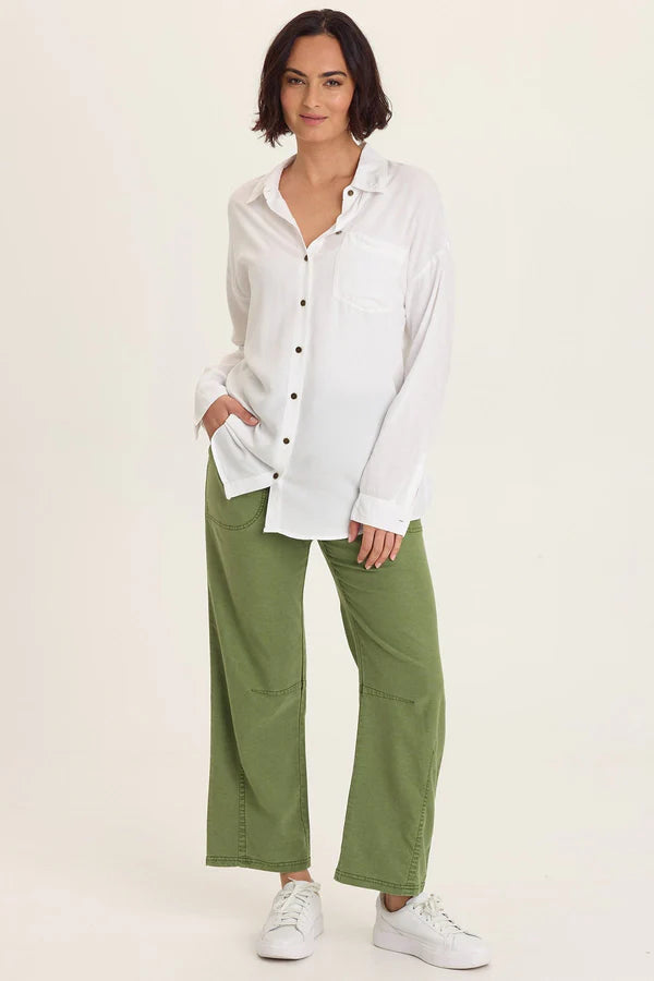 A longline roomy fit and breast pocket bring casual ease to this classic style in lightweight voile.