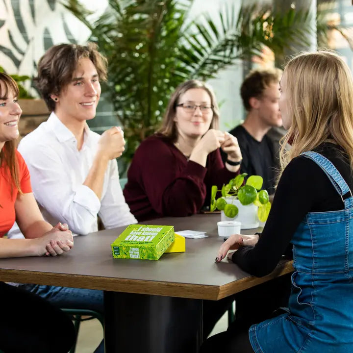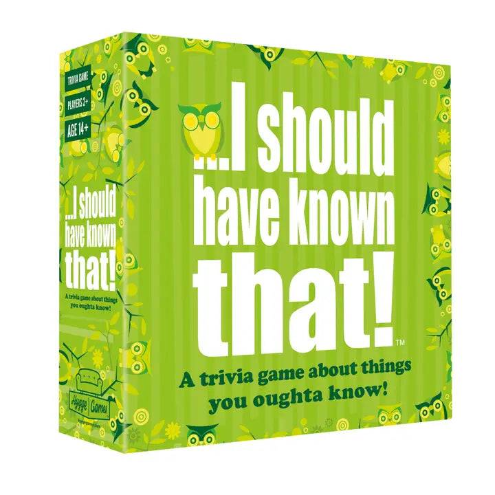 Is starboard on the left or right side of a boat? How do you say ”Japan” in Japanese? Is a penguin a bird? How long did Sleeping Beauty actually sleep? ...I should have known that! is an addictively entertaining trivia game with over 400 questions about things that you should know. In contrast to traditional trivia formats, you don’t receive points for answering questions correctly. Instead, points are subtracted for every incorrect answer! Be prepared to see how much you know without Google and Wikipedia at your fingertips! This fast-paced and hilarious game guarantees nonstop brain freezes, laughs, and embarrassing answers! One thing is for sure: it will only be a matter of time before you hear yourself say... Doh!... I should have known that! Age: 14+ Players: 2+ Play time: 15-45 min