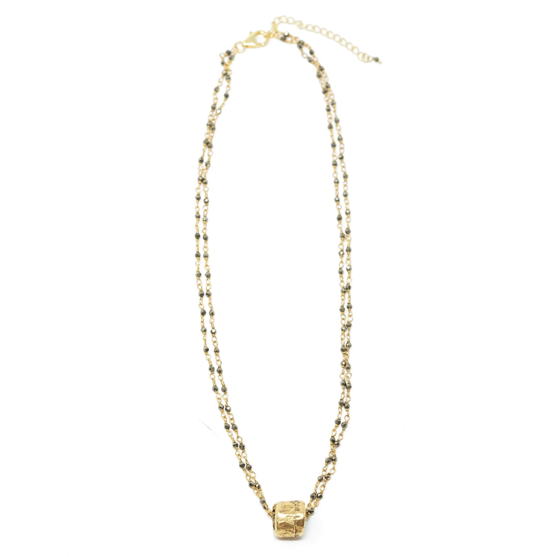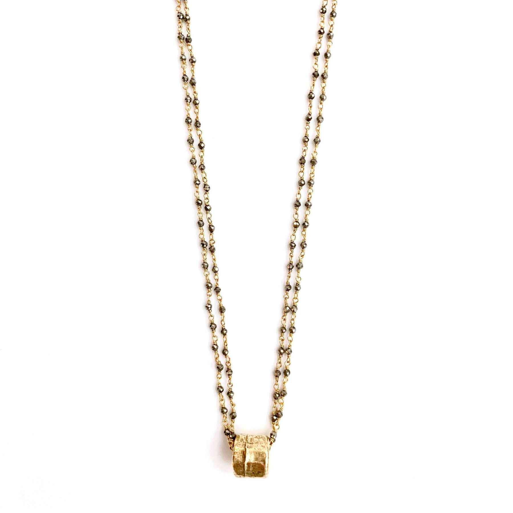Erin Gray Small Gold Barrel on Double Pyrite Necklace