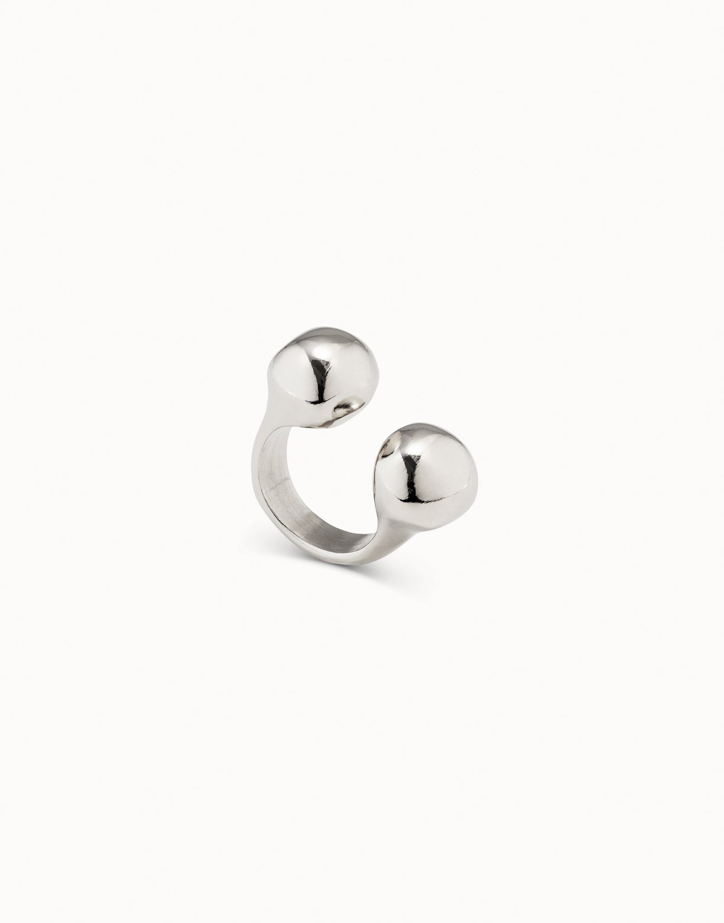 Sterling SIlver ring, open in the center with two balls. A unique design of UNOde50, 100% handmade in Spain and available in several sizes.