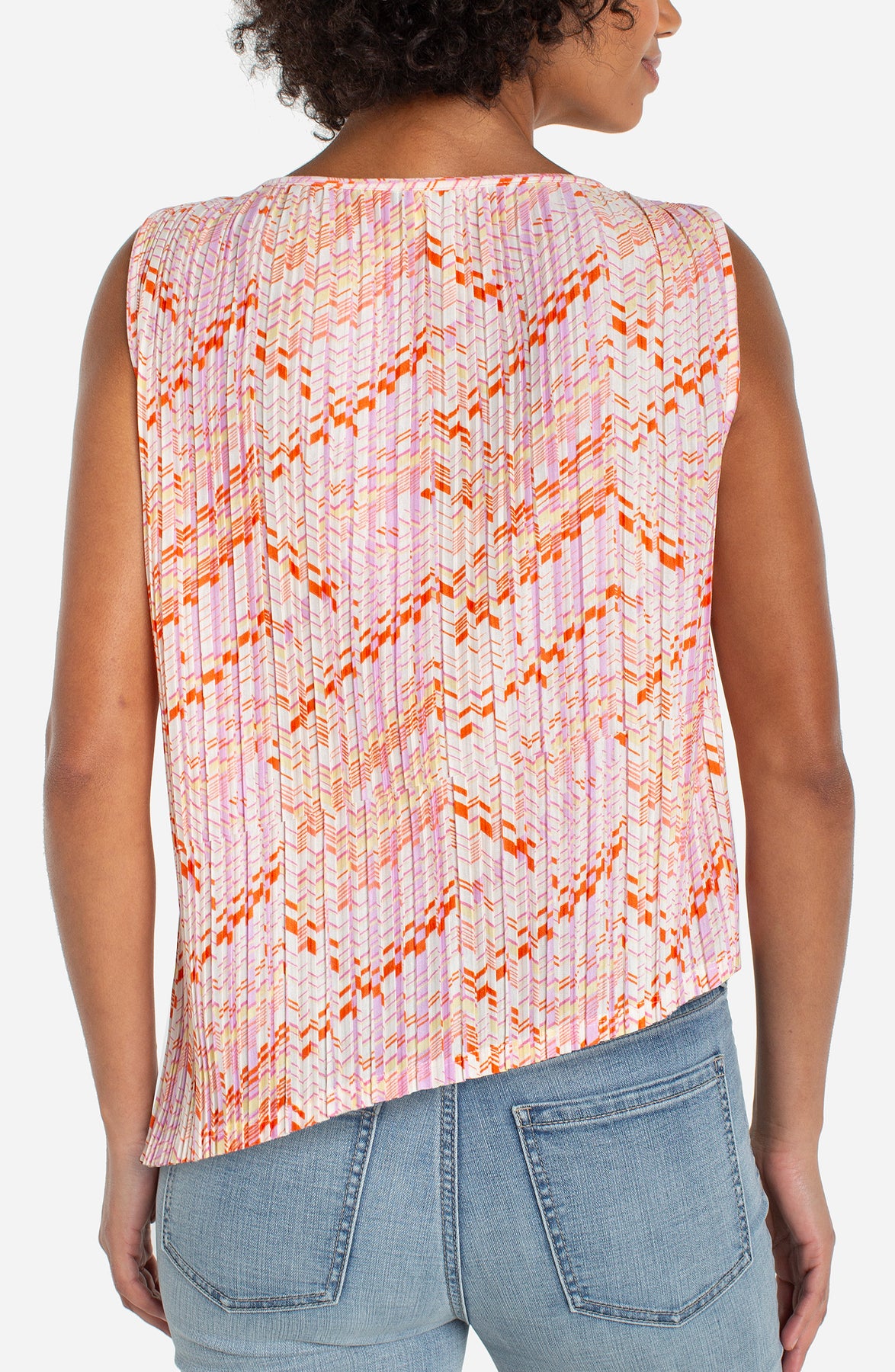 Liverpool Sleeveless Crew Neck Asymetrical Top - Cream & Pink
