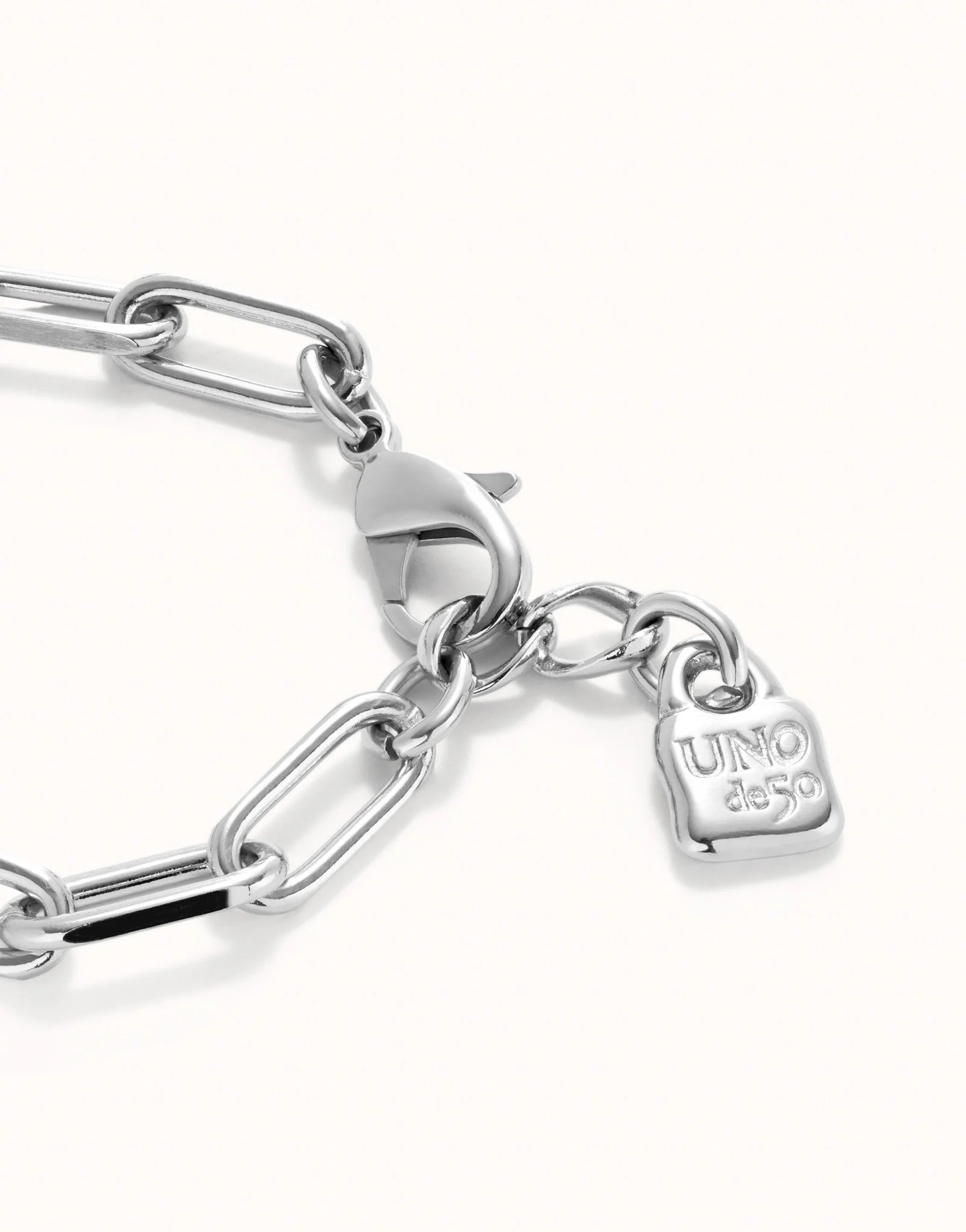 UNOde50 Paper clip link bracelet with padlock - Sterling Silver