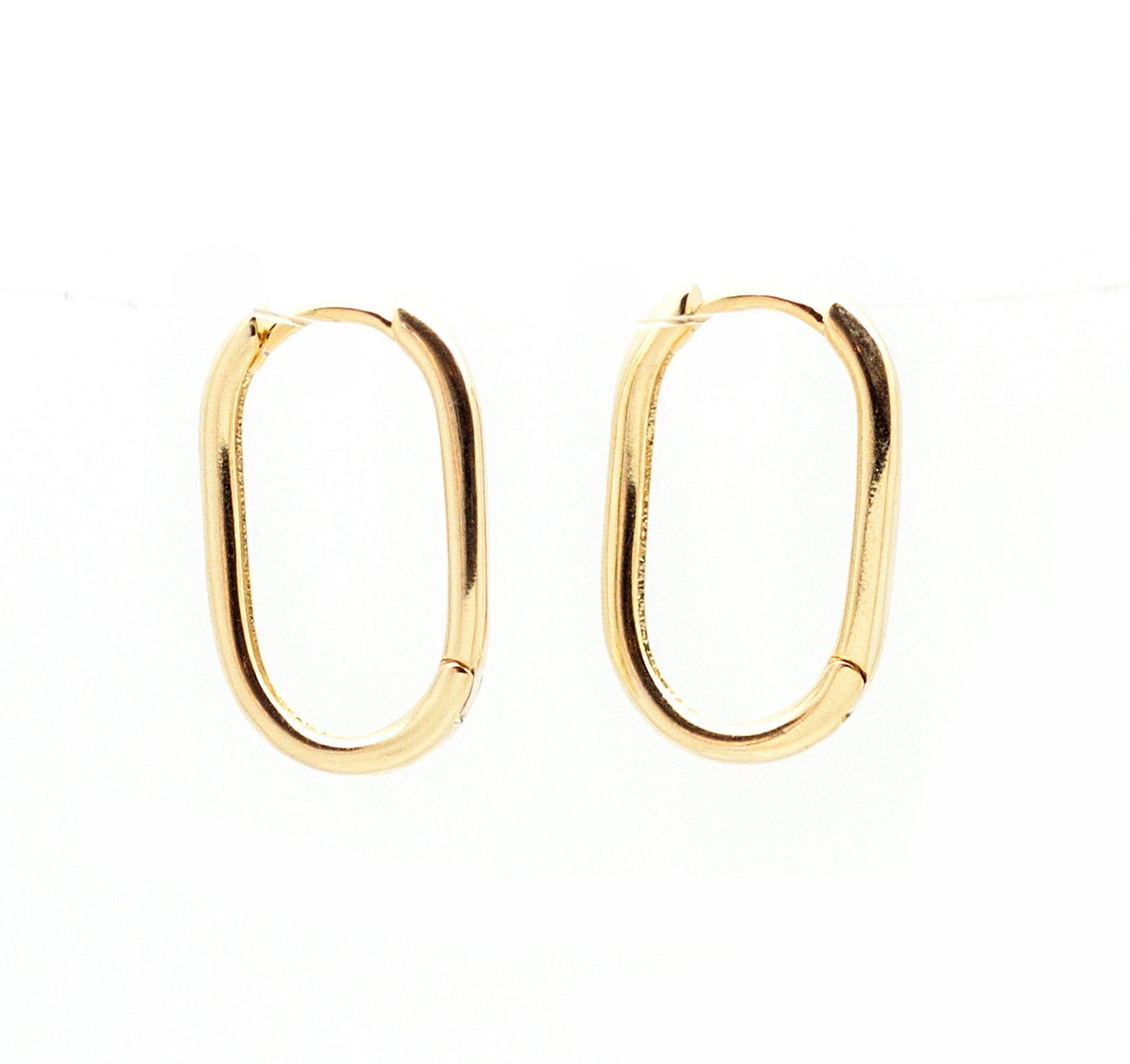 The perfect mini sized hoops to add to any look. You won't want take these off! Deco hoops hang about 1" from ear. Product Details * Hypoallergenic, gold or silver plated stainless steel * 7/8" x 1/2" oval hoops