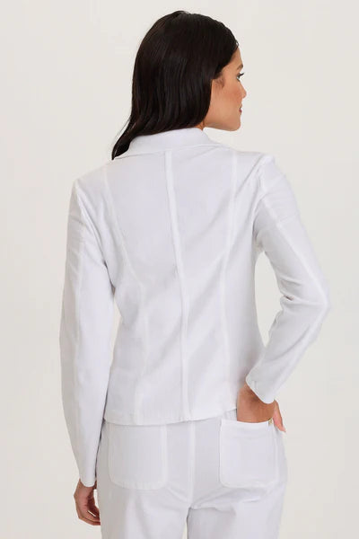 Intricate seaming details are paired with brass hardware, front pockets and rib inserts in this stunning structured jacket.